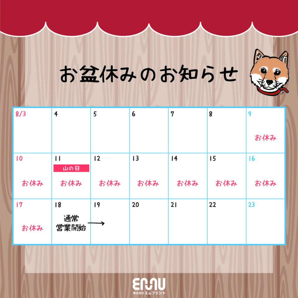 令和7年のお盆休みのお知らせです。